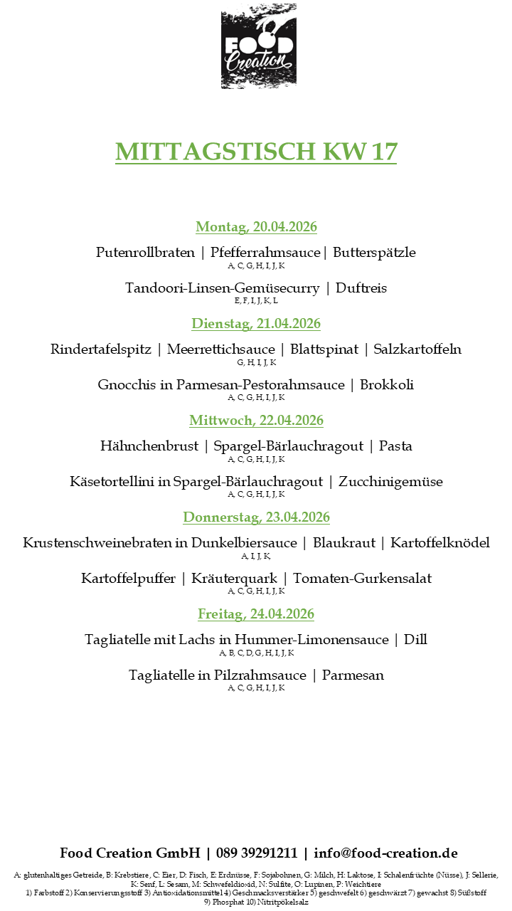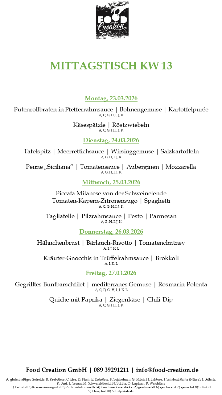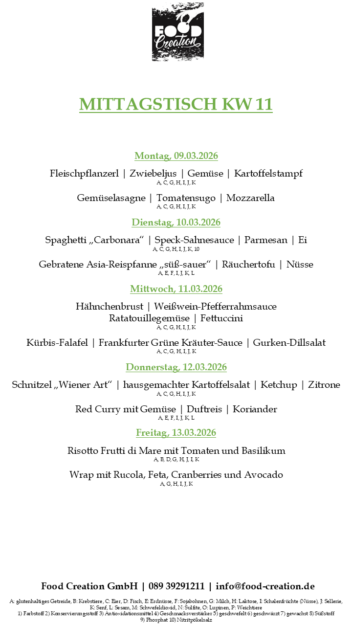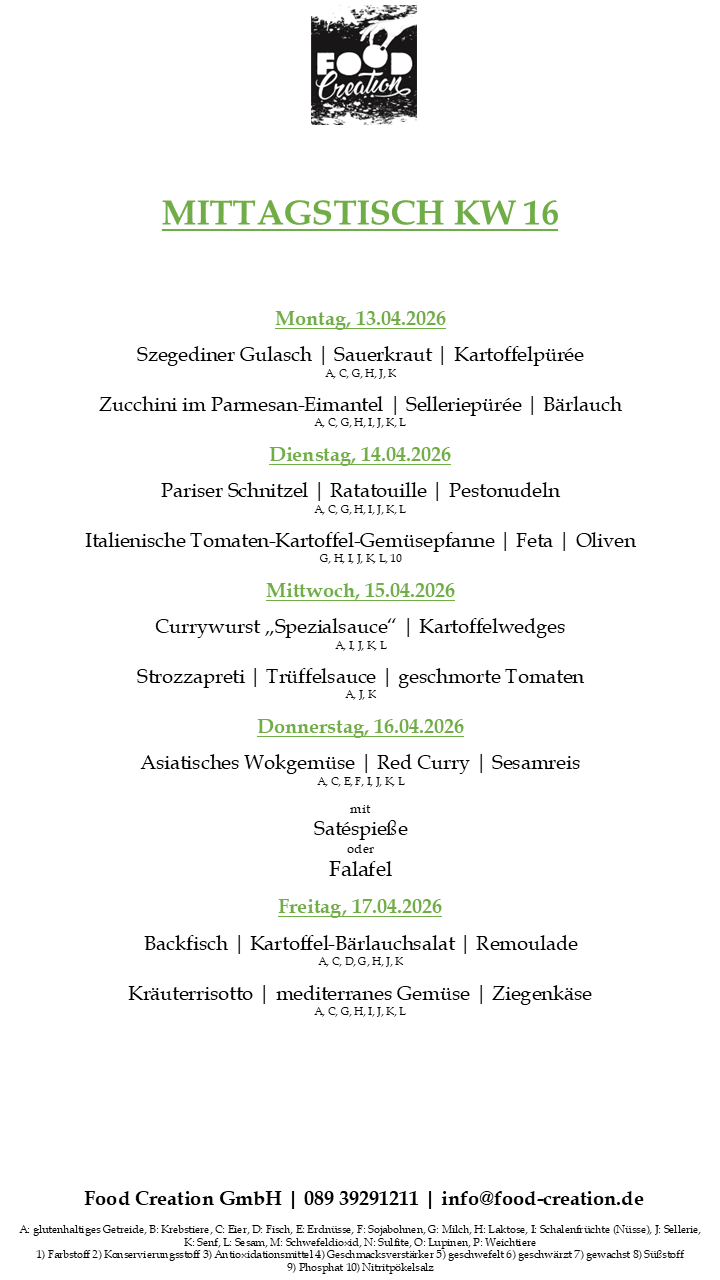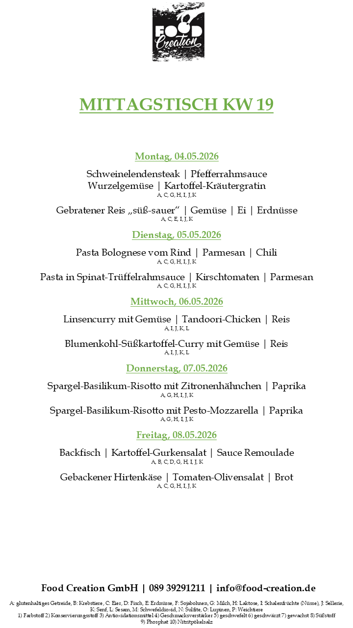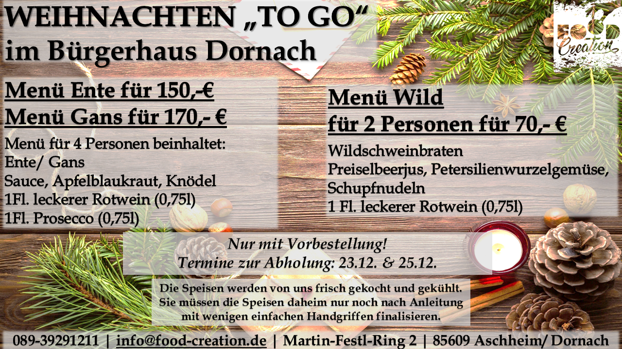 Gerne können Sie unsere abwechslungsreichen Mittagsgerichte bei uns im Bürgerhaus Dornach abholen. (Vorbestellung telefonisch oder per Mail bis spätestens 12:00 Uhr am Vortag)