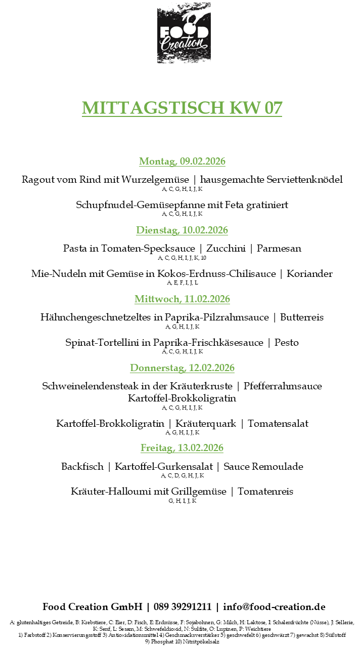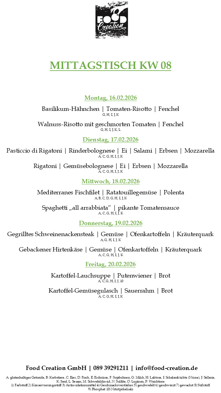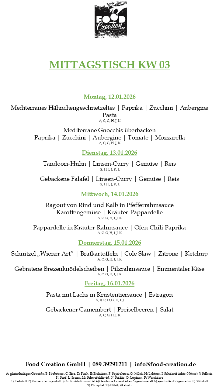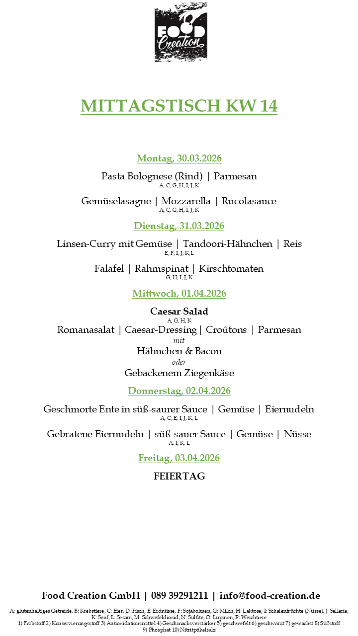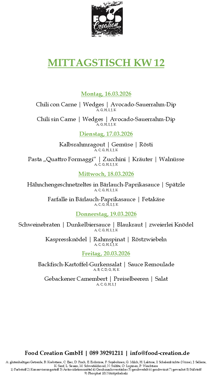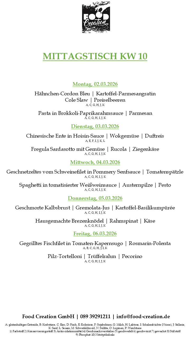 Gerne können Sie unsere abwechslungsreichen Mittagsgerichte bei uns im Bürgerhaus Dornach abholen. (Vorbestellung telefonisch oder per Mail bis spätestens 12:00 Uhr am Vortag)