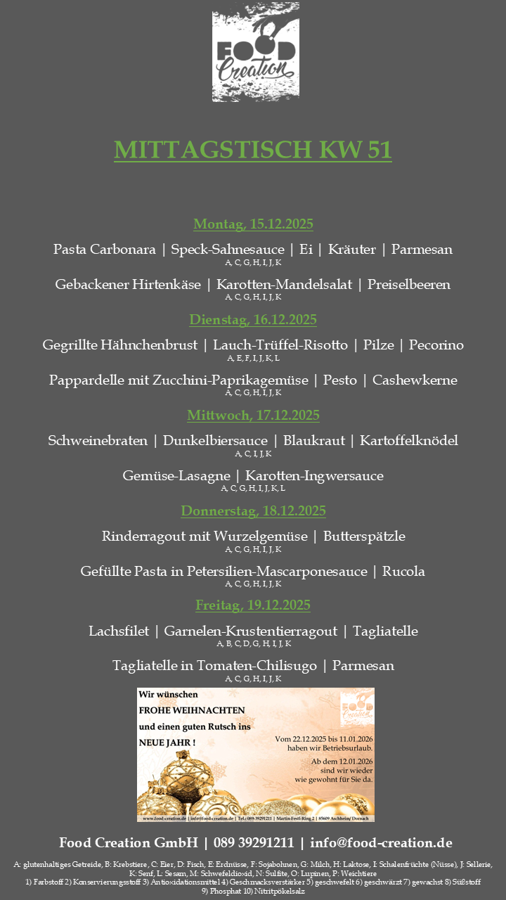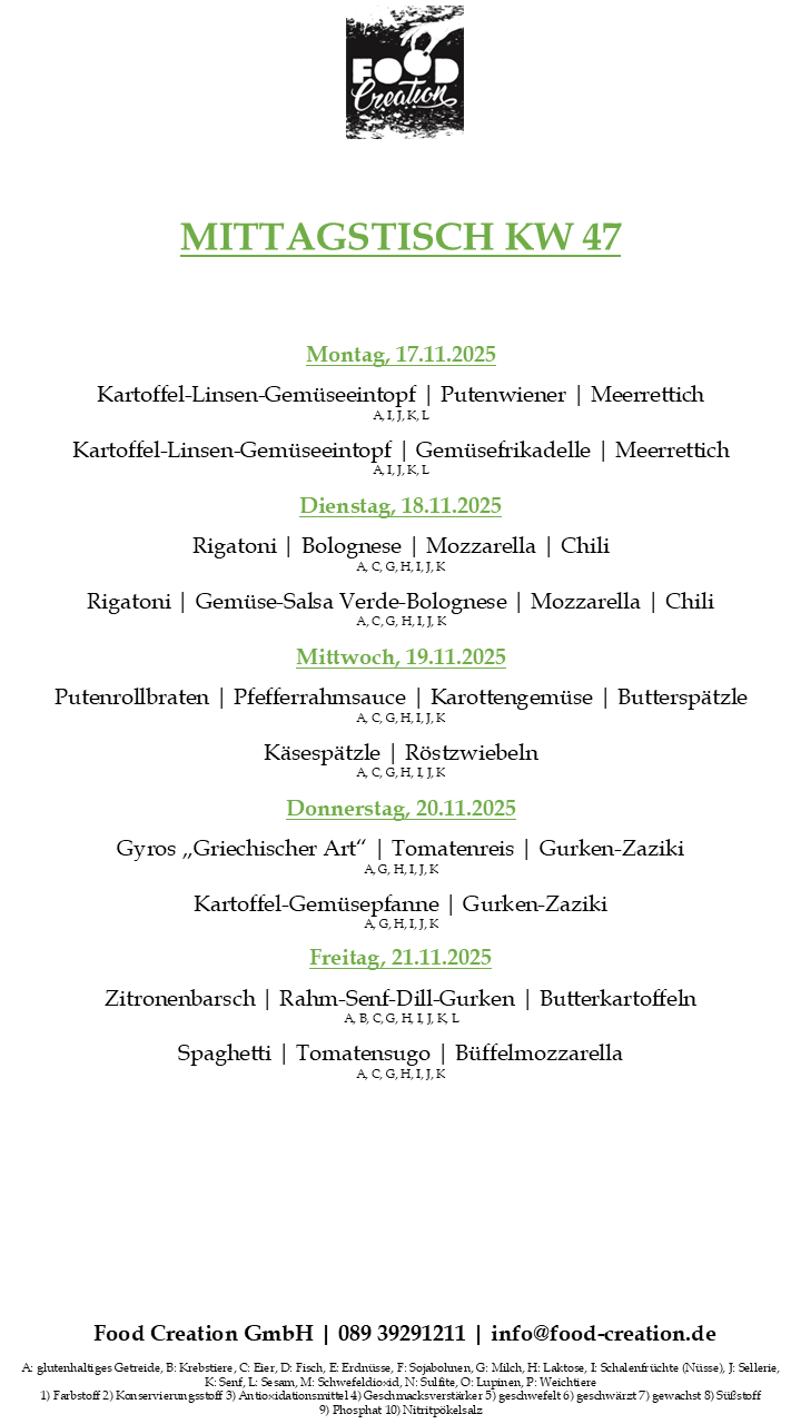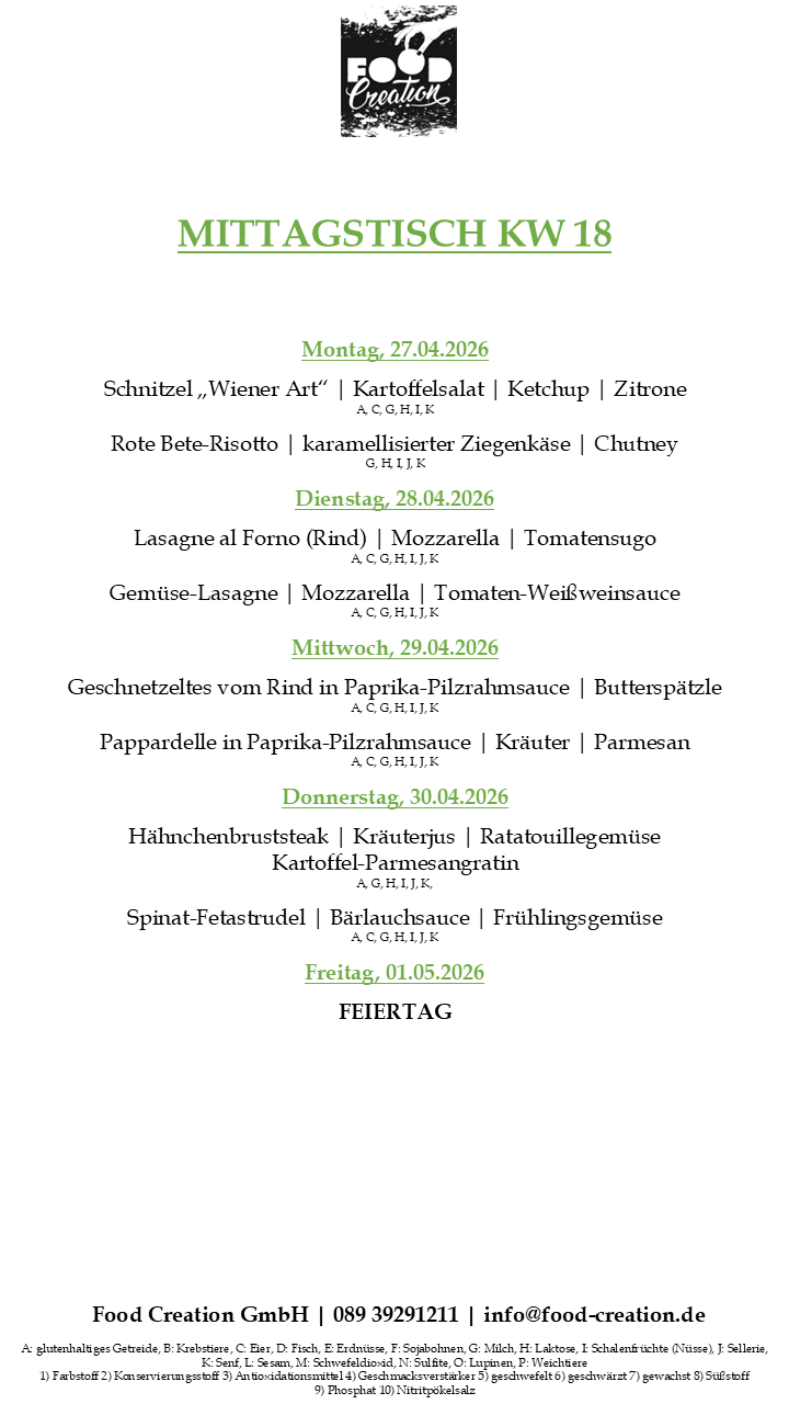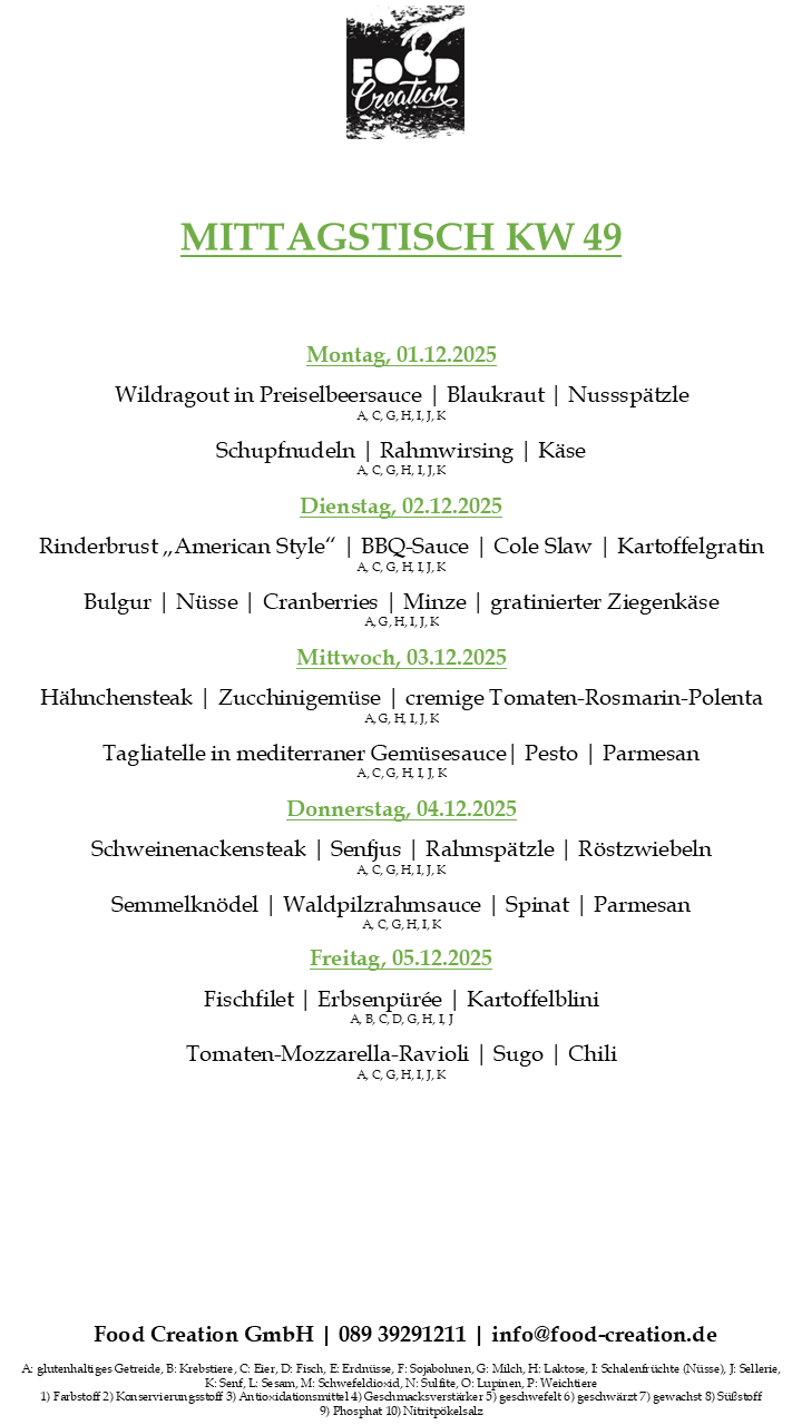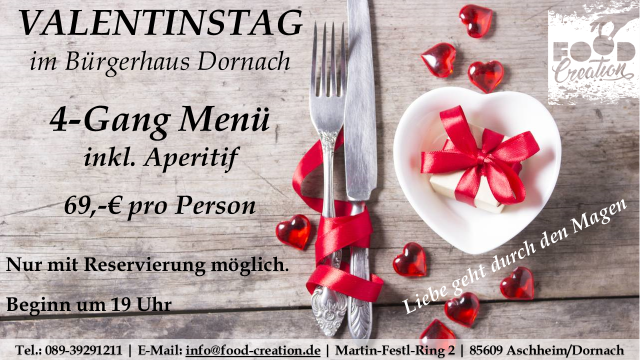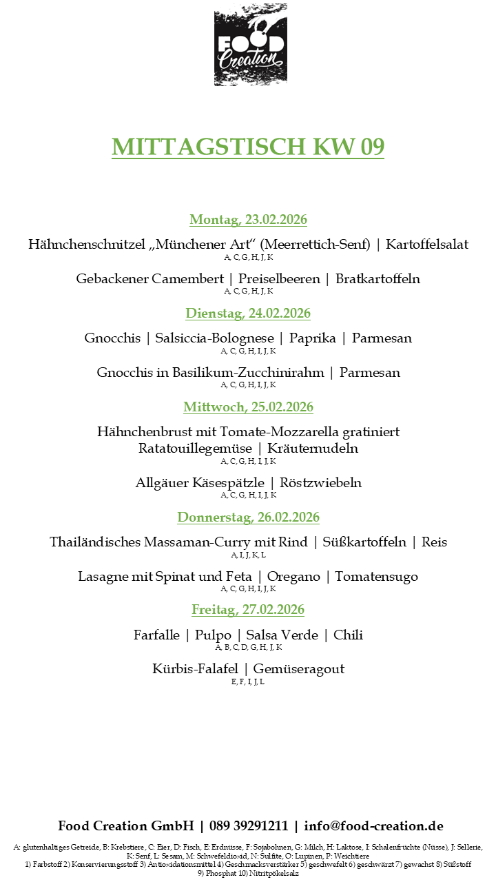 Gerne können Sie unsere abwechslungsreichen Mittagsgerichte bei uns im Bürgerhaus Dornach abholen. (Vorbestellung telefonisch oder per Mail bis spätestens 12:00 Uhr am Vortag)
